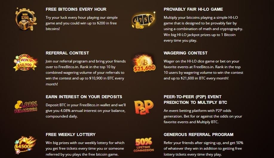 - Games and Contests: FreeBitco.in has number of games, like the multiply BTC game, the Hi-Lo game, or the wheel of fortune etc where users can play to win and multiply even more bitcoins. These games are very entertaining and provide an opportunity to earn additional bitcoins.