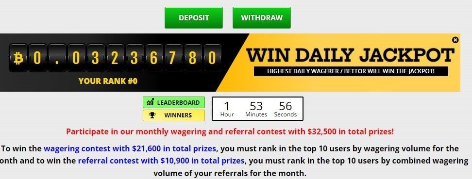 You can participate in the grand jackpot without paying Bitcoin, but you must obtain lottery tickets for participation. Every week, you can win up to $7500 in BTV from these types of lottery draws on the site.