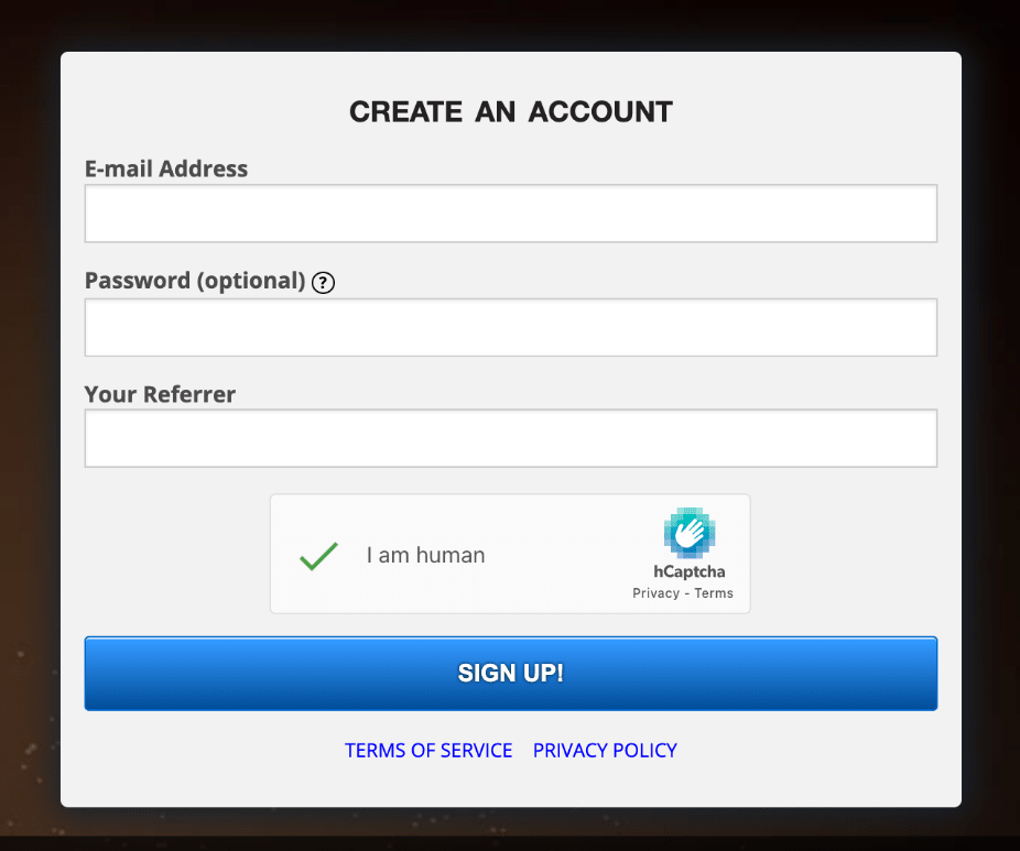 Step 2: Enter your Email Address and password. If you have a referrer, enter the referral code, then solve a quick captcha and hit the ‘Signup’ button.